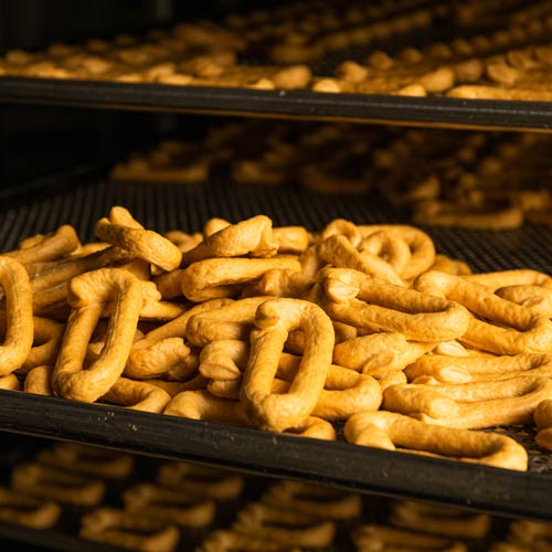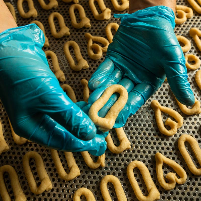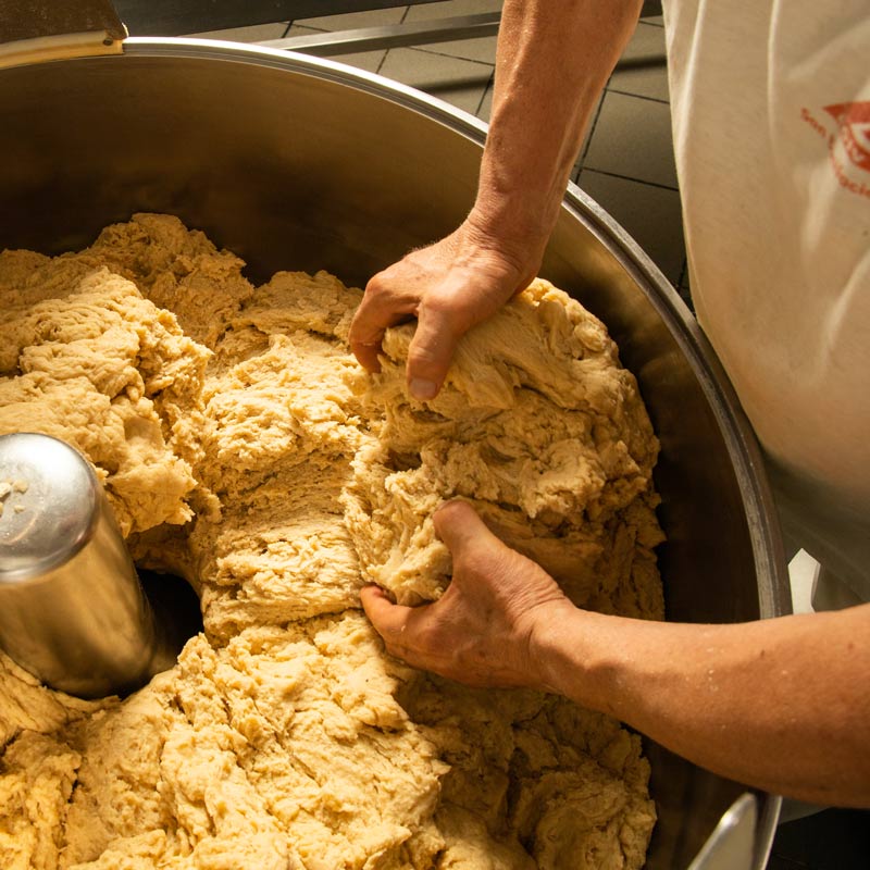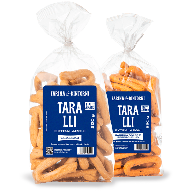 Svolgiamo questo processo a stretto contatto con gli agricoltori locali, che sono per noi una grande risorsa. Setacciamo accuratamente le farine, in modo da eliminare eventuali impurità. Inoltre, usiamo solo olio extravergine d’oliva e vino bianco italiano.